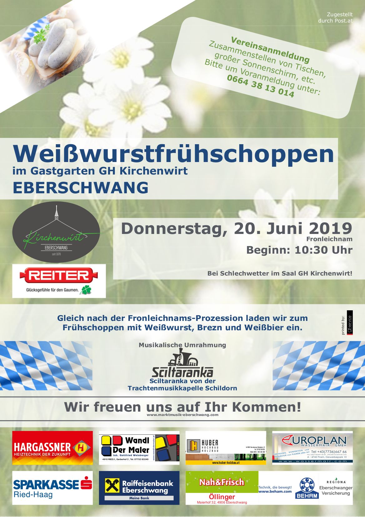 Am Donnerstag, 20. Juni 2019, laden wir nach der Fronleichnamsprozession sehr herzlich zum traditionellen Weißwurstfrühschoppen ein!